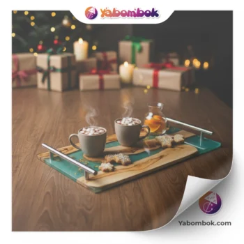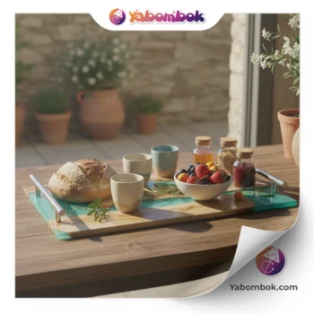 Le plateau est rehaussé de deux poignées métalliques cylindriques élégantes en finition inox brossé, fixées à chaque extrémité. Ce produit est adapté pour servir cafés, thés, petits-déjeuners, fromages ou décoration d’intérieur. Chaque pièce est unique, façonnée à la main en Tunisie. Signé Yabombok.